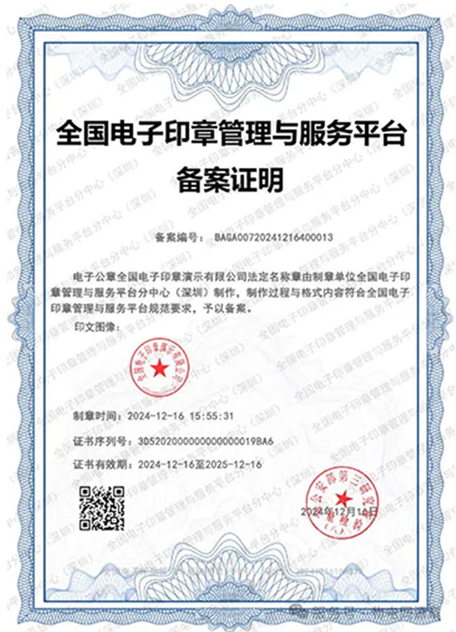 The Unified Physical–Digital Seal is a legally registered electronic seal recognized by public security authorities and offers the following advantages: